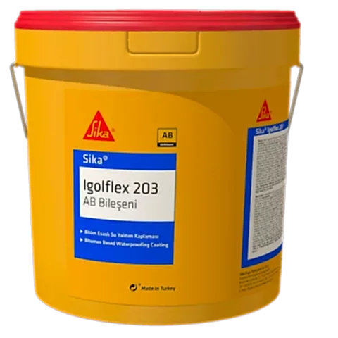 Sika® Igolflex-203 iki bileşenli çimento ve bitüm kauçuk esaslı su yalıtım malzemesidir. Birinci bileşen sıvı bitüm kauçuk, ikinci bileşen hızlı kürlenmeyi sağlayan reaktif malzemeyi içerir.