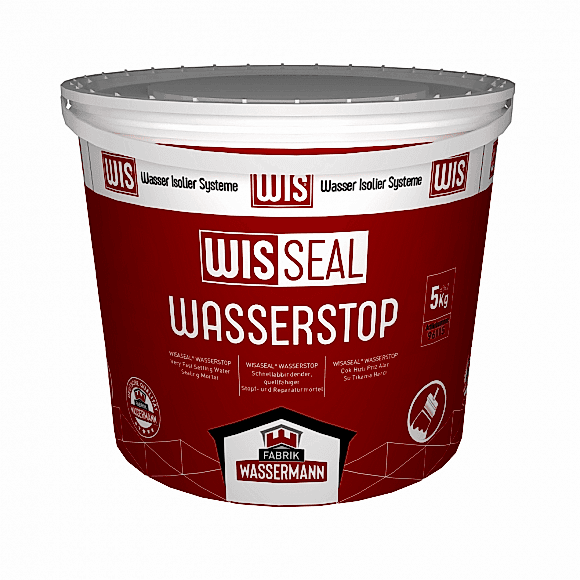 WISSEAL® WASSERSTOP Özel çimentolar, kimyasallar ve polimer katkılar içeren, aktif su kaçaklarının yalıtımında ve yüzey sularının kurutulmasında kullanılan, su ile temasında çok hızlı priz alan ani su tıkama harcıdır.